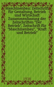 Maschinenbau : Zeitschrift für Gestaltung, Betrieb und Wirtschaft Zusammenfassung der Zeitschriften "Der Betrieb", Zeitschrift für "Maschinenbau", "Kraft und Betrieb", "Zwanglose Mitteilungen des Vereines deutscher Maschinenbau - Anstalten". Bd.14 (Jg. 17 Der Betrieb), H.15