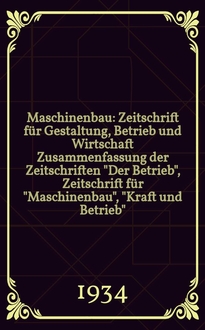 Maschinenbau : Zeitschrift für Gestaltung, Betrieb und Wirtschaft : Zusammenfassung der Zeitschriften "Der Betrieb", Zeitschrift für "Maschinenbau", "Kraft und Betrieb", "Zwanglose Mitteilungen des Vereines deutscher Maschinenbau - Anstalten" / Hrsg. vom Verein deutscher Ingenieure. Bd.14 (Jg. 17 Der Betrieb), H.15:. - 1935