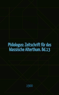 Philologus : Zeitschrift für das klassische Alterthum. Jg.6 1851, H.1