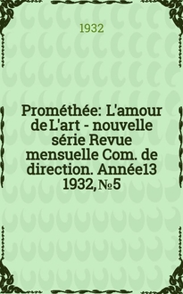 Prométhée : L'amour de L'art - nouvelle série : Revue mensuelle : Com. de direction / Réd. en chef m. Michal Florisoone. Année16 1935, №Указатель:. - 1935