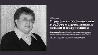 Вебинар Стратегия профилактики в работе с агрессивными детьми и подростками состоялся 23.10.2020 Ведущая вебинара: Ольга Кондратьева, ...