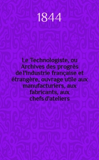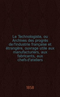 Le Technologiste, ou Archives des progrès de l'industrie française et étrangère, ouvrage utile aux manufacturiers, aux fabricants, aux chefs d'ateliers, aux ingénieurs, aux mécaniciens, aux artistes, aux ouvriers. T.18, Février