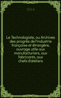 Le Technologiste, ou Archives des progrès de l'industrie française et étrangère, ouvrage utile aux manufacturiers, aux fabricants, aux chefs d'ateliers, aux ingénieurs, aux mécaniciens, aux artistes, aux ouvriers. T.18, Février. Аннотация: Книга содержит ряд статей по вопросам технологии и организации производства товаров легкой промышленности, опубликованных в специализированных журналах Франции и других стран. Для специалистов легкой промышленности и предприятий-производителей, а также для широкого круга лиц, интересующихся данной тематикой. Содержание Введение Глава I. Основные понятия и термины Глава II. Производство текстильной продукции. Ткани Глава III. Химическая промышленность. Промышленность синтетических волокон