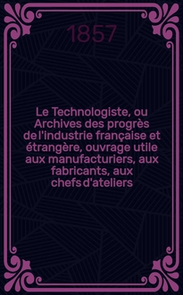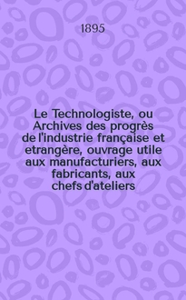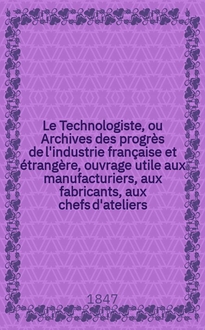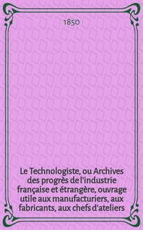 Le Technologiste, ou Archives des progrès de l'industrie française et étrangère, ouvrage utile aux manufacturiers, aux fabricants, aux chefs d'ateliers, aux ingénieurs, aux mécaniciens, aux artistes, aux ouvriers. T.14, Avril