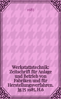 Werkstattstechnik : Zeitschrift für Anlage und Betrieb von Fabriken und für Herstellungsverfahren. Jg.74 1984, H.4
