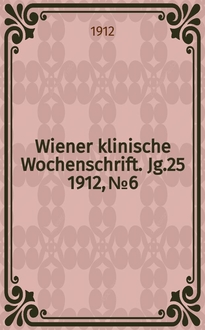 Wiener klinische Wochenschrift / Organ der k.k. Gesellschaft der Ärzte in Wien. Begründet von ... Prof. H. v. Bamberger. Jg.17 1904, №32:. - 1904