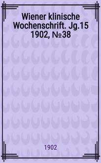 Wiener klinische Wochenschrift / Organ der k.k. Gesellschaft der Ärzte in Wien. Begründet von ... Prof. H. v. Bamberger. Jg.18 1905, №36:. - 1905