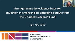 Strengthening the evidence base for education in emergencies: Emerging outputs from the E-Cubed Research Fund. Now in its fourth year, the E-Cubed ...