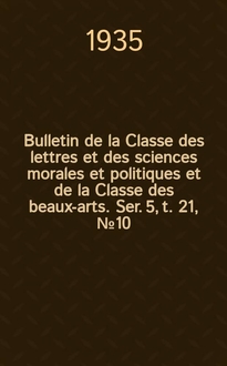 Bulletin de la Classe des lettres et des sciences morales et politiques et de la Classe des beaux-arts / Acad. roy. de Belgique. Ser. 5, t. 23, № 10:. - 1937
