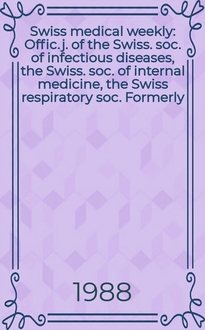 Swiss medical weekly : Offic. j. of the Swiss. soc. of infectious diseases, the Swiss. soc. of internal medicine, the Swiss respiratory soc. Formerly: Schweiz. med. Wochenschr. Jg. 128 1998, № 41