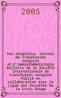 Vox sanguinis : Journal de transfusion sanguine et d'immunohématologie Bulletin de la Société internationale de transfusion sanguine Publié en collaboration avec la Ligue des Sociétés de la Croix Rouge. Vol.26, № 2