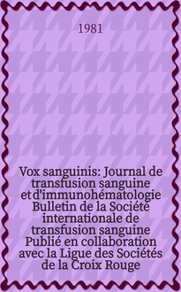 Vox sanguinis : Journal de transfusion sanguine et d'immunohématologie : Bulletin de la Société internationale de transfusion sanguine : Publié en collaboration avec la Ligue des Sociétés de la Croix Rouge. Vol.26, № 2:. - 1974