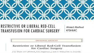 Restrictive or Liberal Red-Cell Transfusion for Cardiac Surgery ( Lecture 3 )