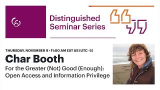 Char Booth will address the concept that open access has had a huge impact on publishing and scholarly communication, yet who you are, what you earn, and ...