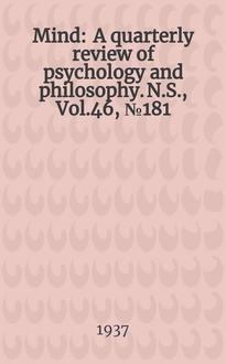Mind : A quarterly review of psychology and philosophy. N.S., Vol.16, №62:. - 1907