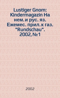 Lustiger Gnom : Kindermagazin На нем. и рус. яз. Ежемес. прил. к газ. "Rundschau". 1998, № 2