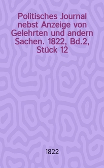 Politisches Journal nebst Anzeige von Gelehrten und andern Sachen / hrsg. von einer Ges. von Gelehrten. 1785, Bd. 2, Stück 12:. - 1785