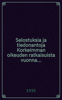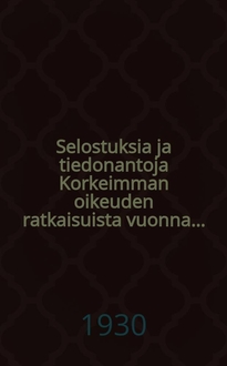 Selostuksia ja tiedonantoja Korkeimman oikeuden ratkaisuista vuonna.... 1929: / toimittanut L. Miettinen. - 1930