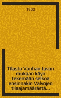 Tilasto maaseudun kierto-ja pientenlasten kouluista. - Helsinki : Frenckellin kirjapaino, 1906. - IV,[2],85с. : табл. ; 26 см. - (Alkuopetuskomitea . Liite komitean mietintöön)