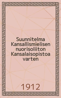 Suunnitelma suomen sahanomistajain maanviljelysjohtokunnan Stipendiaattien tanskan matkaa varten VII/10-18 1908. - Lahden, 1908. - 8° см