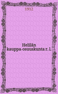 Helilän kauppaosuuskunta r.1.vuosikertomus seitsemänneltä toiminlaakson Työväen kirjapaino 1912. - Kotka : Kyminlaakson Työväen kirjapaino, 1913. - 15 с. ; 22 см