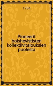 Belickij G.J., Okunev A., Okunev A. Kollektiivitalouksien aktiivi on kasvatettava leniniläisesti : suom / G.Belitski ja A. Okunev. - L. : Valtion kustannusliike Kirja, 1933. - 46, [1] с. ; 20 см