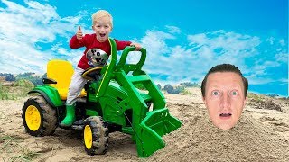 Малыш Весело ездит на Большом зеленом тракторе и строит домик для игрушечной машинки
