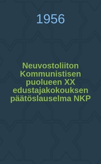 Neuvostoliiton talouspolitiikka / Laatinut prikaati B. Bohanovski, M. Hinsburg, S.Kotsheskov, E. Romm, ja S. Tjulponov. Yleistoimittaja: B. Bohanovski; suom O. Arjanne. - Petroskoi : Valtion kustannusliike Kirja, 1932. - 367[2]с. : табл. ; 22 см. - (Oppikirja Neuvostopuoluek ja marxilais-leniniläisille piireille.)