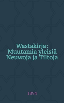 Wastakirja Ote Merilaista Suomen Suuriruhtinanmaalle. - Uusikaupunki, 1890. - 8° см