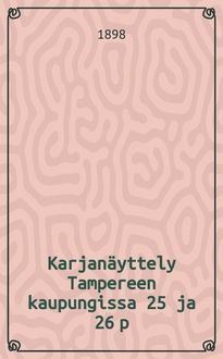 Karjanäyttely Kuopion kaupungissa 9 ja 10 päivänä kesäkuuta 1898 : Luettelo näyttelyä varten. - Kuopio : Kuopion Uudessa Kirjap, 1898. - 83с. : ил. ; 22 см