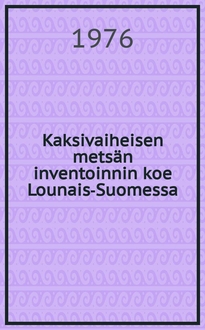 Kuusela K., Setälä K., Setälä K. Koe metsikköarviointien suorittamiseksi helikopterista / kirj. Kullervo Kuusela, Kalervo Setälä. - Helsinki : Suomen metsätieteellinen seura, 1959. - 23,[1]с. : ил.,карты ; 25 см. - (Silva Fennica ; 97 [0037-5330]). - Библиогр.: с. 22-23
