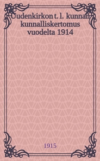 Marjala J. Uudenkirkon maamieskoulun vuosikertomus lukuvuodelta 1908-9 / Laatinut Juho Marjala. - Viipuri : Karjalan Kirjapaino O.Y.Kirjap., 1909. - 24с. ; 22 см