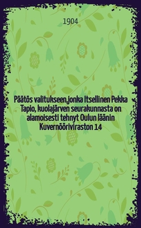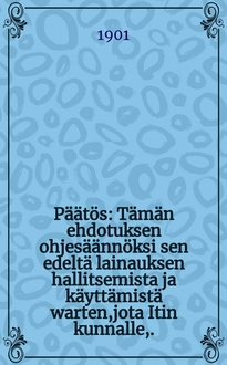 Päätös kyytilaitosten asetamisesta ja kyydinpidon järjestämisestä : Annettu Helsingissä VII/17 1909. - L.s., 1909. - 8° см