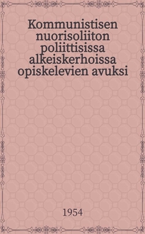 Jaroslavskij Em. Kommunistisen kasvatuksen tehtävistä : (selostus nuorten sotivien jumalattomien ja nuorten Mopr:in ystävien yleisliittoa käsittelevässä konferensissa toukokuun 23 p. v.1931) / Jaroslavski. - L. : Valtion kustannusliike Kirja, Leningradin osasto, 1932. - 18 с. ; 18 см. - (SSSR:n sotivien jumalattomien liitonkeskusneuvosto)