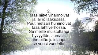 1. Jo joutuu armas aika / Ja suvi suloinen, / Joll' kauniist' kaiken paikan / Kaunistaa kukkainen; / Nyt armas aurink' meitä / Taas lähtee lähemmäks', / Hän ...