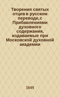 Творения святых отцев в русском переводе, с Прибавлениями духовного содержания, издаваемые при Московской духовной академии...