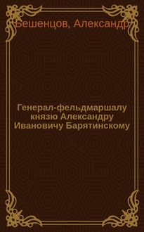 Бешенцов А. Генерал-фельдмаршалу князю Александру Ивановичу Барятинскому : [Стихотворение. - Санкт-Петербург], ценз. 1860. - [1] с Поиск автора для диссертации