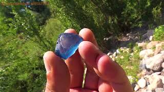 Синий аквамарин лежит среди камней
