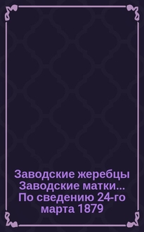 Конный завод В.А. Волконского. Заводские жеребцы; Заводские матки: По сведению 12-го мая 1875 / Завод кн. В.А. Волконского Симбирск. губ., Курмышск. уезда в с. Верхнем Талызине. Осн. 1865. - [Москва] : Унив. тип., ценз. 1875. - 6 с