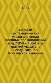 Богословский И.П. Полный круг духовных законов : Действия, обязанности и права лиц православного белого и монашествующего духовенства, как подчиненных, так и начальствующих : С прил. указов и определений Святейшего правительствующего синода, наказов благочинным и церковным старостам и разъяснения отдельных случаев пастырской практики : По Св. закон., его продолжениям, Духовн. регламенту и Уставу духовн. консисторий, печатанному по определению Святейшего правительствующего синода, сост. И.П. Богословский. - 2-е изд., знач. испр. и доп. всеми узаконениями по [1-е янв. 1881 г.], и решениями по различным вопросам пастырской практики. - [Москва] : тип. К. Индриха, 1881. - [2], 524 с. ; 21 см