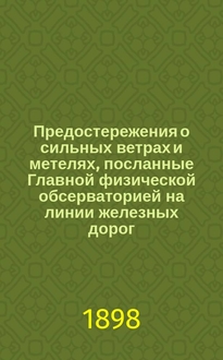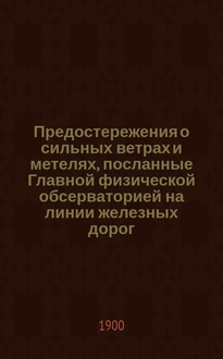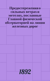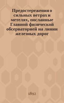 Предостережения о сильных ветрах и метелях, посланные Главной физической обсерваторией на линии железных дорог.. : Отчет, представленный г. министру путей сообщения в октябре 1891 г. Сост. по поручению дир. Глав. физ. обсерватории Б. Керсновским, физиком Отд-ния штормовых предостережений. ... зимою 1901-1902 года