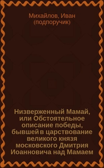 Низверженный Мамай, или Обстоятельное описание победы, бывшей в царствование великого князя московского Димитрия Иоанновича над Мамаем, татарским ханом, и о совершенном истреблении сильного ополчения его россиянами на Куликовом поле, между рек: Мечи и Дона, собранное из разных достоверных писателей Иваном Михайловым