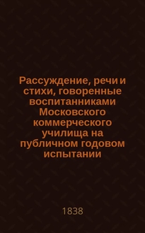 Покровский Г.Ф. Рассуждение о некоторых чертах, определяющих степени благосостояния людей и народов, произнесенное в торжественном собрании Ярославского Демидовского высших наук училища, 29-го апреля 1832 года, профессором философии, надворным советником и кавалером Герасимом Покровским [и другие речи и стихи, произнесенные в торжественном собрании]. - Москва : Унив. тип., 1832. - 52 с. ; 25 см