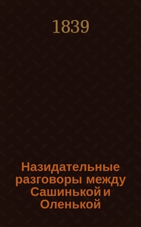 Назидательные разговоры между Сашинькой и Оленькой. - Санкт-Петербург : тип. Иверсена, 1833. - 47 с