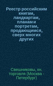 Реестр российским книгам, географическим атласам и картам, планам, портретам и музыкальным сочинениям, продающимся в Москве и в С.-Петербурге у комиссионера Имп. Публичной библиотеки Андрея Васильевича Глазунова. В книге говорится о России, и ни один географический атлас, ни один географический план не будет бесполезным, если кто-нибудь напишет о России.