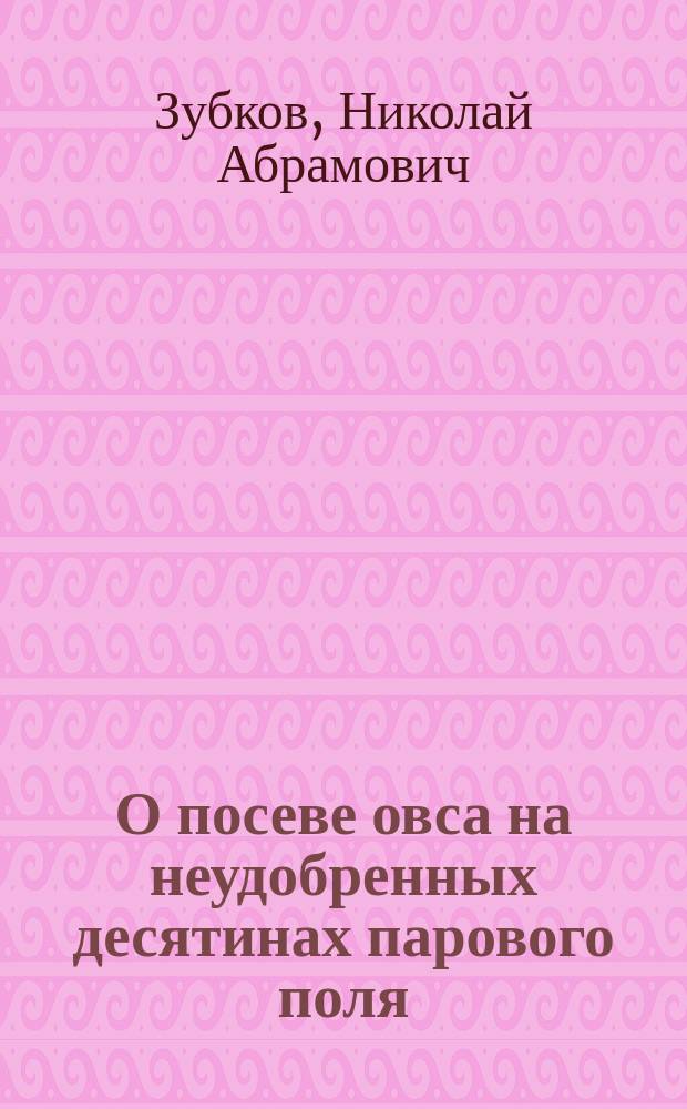 Зубков Н.А. О посеве овса на неудобренных десятинах парового поля / [Действ. чл. Яросл. о-ва сел. хоз-ва Н. Зубков]. - Санкт-Петербург : тип. Королева и К°, 1854. - 8 с. ; 20 см