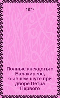 Полные анекдоты о Балакиреве, бывшем шуте при дворе Петра Первого. - 5-е изд. [Печ. с изд. 1862 г.]. - Москва : Яковлев, 1870. - 36 с. ; 18 см