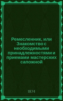 Ремесленник : Практич. руководство для ремесленных училищ и любителей, желающих вполне изучить и ознакомиться с необходимыми принадлежностями и приемами в мастерских..