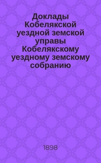 Доклады Дансковской уездной земской управы ... Данковскому уездному земскому собранию. XXXIV очередному ... [1898 г.]