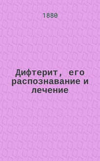 Соловьев П.В. Дифтерит и его лечение гомеопатическими средствами / Сост. П. Соловьев. - Санкт-Петербург : тип. и лит. Гогенфельден и К°, 1880. - 39 с. ; 19 см